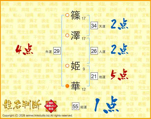 篠(17画)澤(17画) 姫(9画)華(12画)