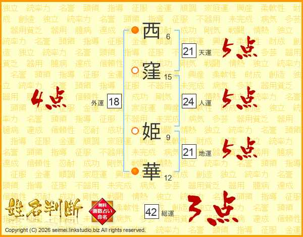 西窪姫華さんの総運は42画の3点!