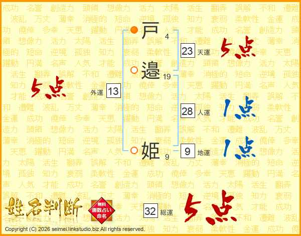 戸邉姫さんの総運は32画の5点!