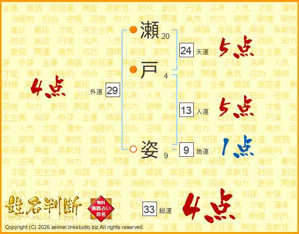 瀬戸姿さんの総運は33画の4点!