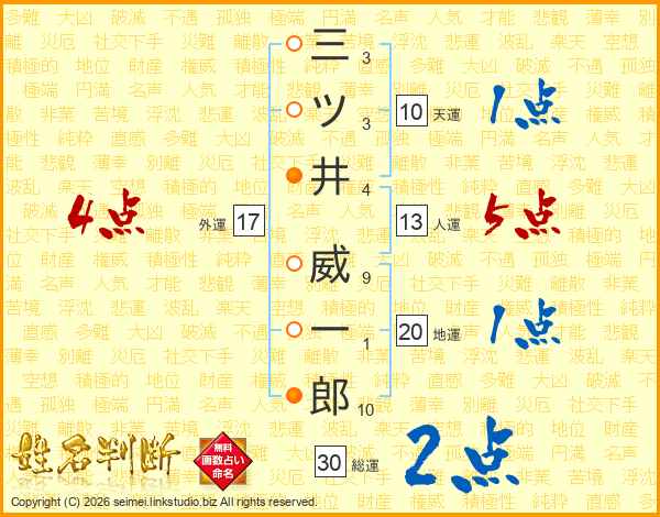 三ツ井威一郎さんの外運は17画の4点!