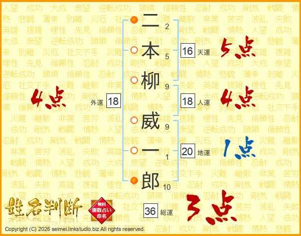 二本柳威一郎さんの総運は36画の3点!