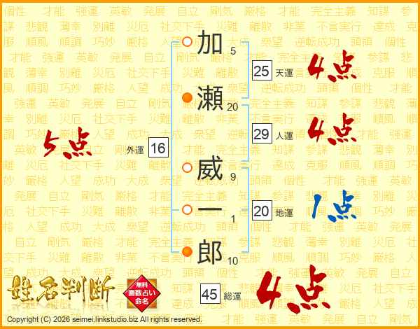 加瀬威一郎さんの総運は45画の4点!
