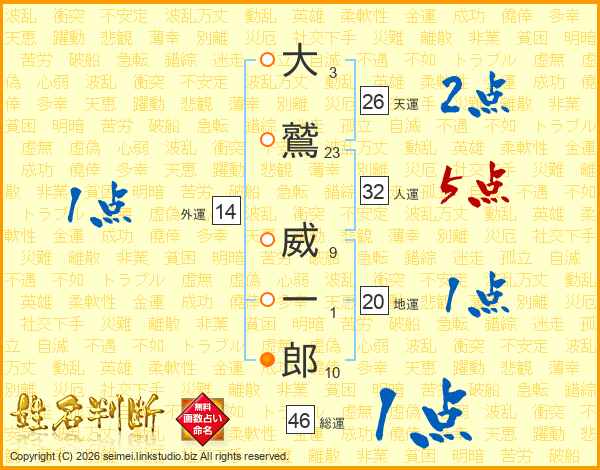 大鷲威一郎さんの総運は46画の1点!