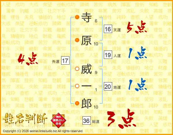 寺(6画)原(10画) 威(9画)一(1画)郎(10画)