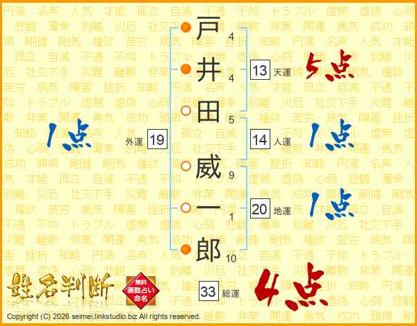 戸(4画)井(4画)田(5画) 威(9画)一(1画)郎(10画)