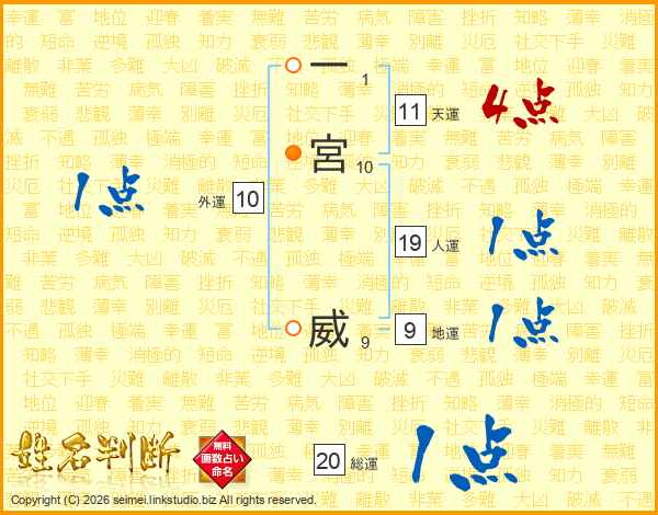 一宮威さんの総運は20画の1点!