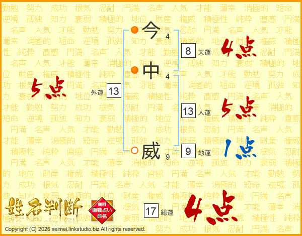 今中威さんの人運は13画の5点!