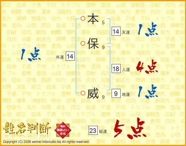 本保威さんの総運は23画の5点!