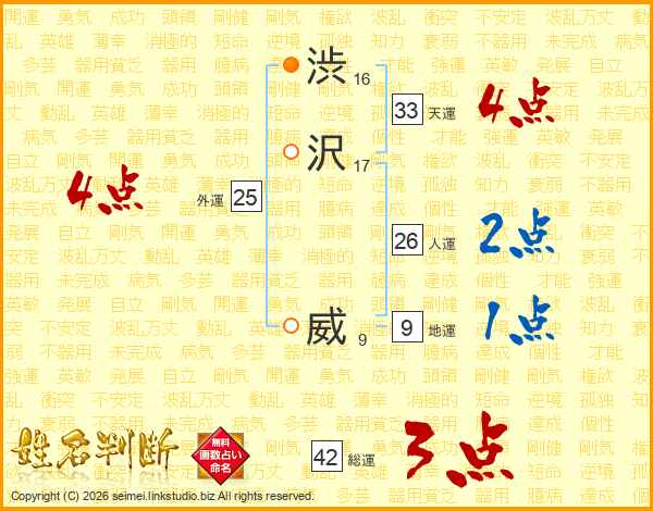 家系が持つ宿命的な運勢を表します。祖先から受け継いだ苗字ですので自分の力が及びません。家柄を象徴します。苗字の合計画数。