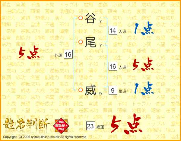 谷尾威さんの総運は23画の5点!