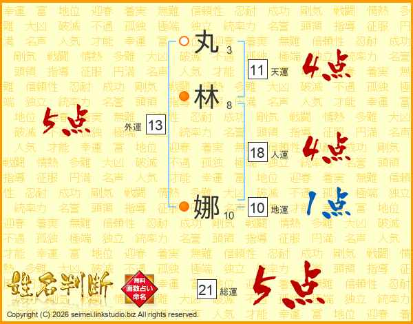 丸林娜さんの総運は21画の5点!