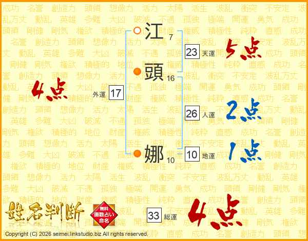 江頭娜さんの総運は33画の4点!