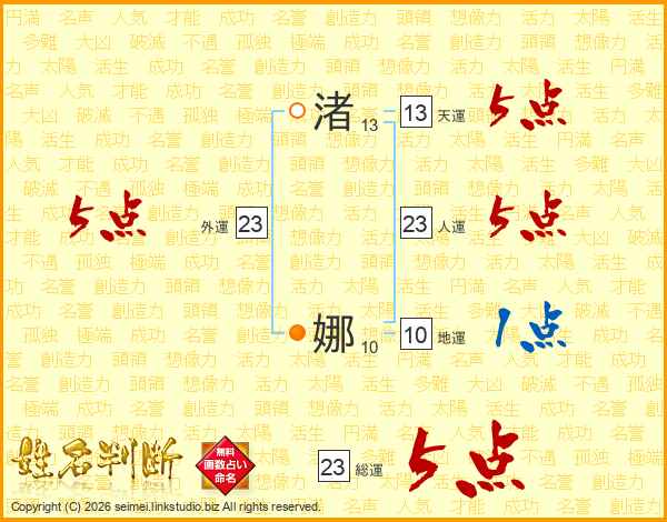 渚娜さんの総運は23画の5点!