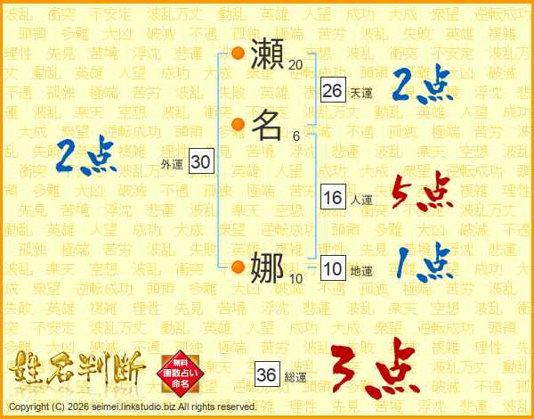 瀬名娜さんの天運は26画の2点!