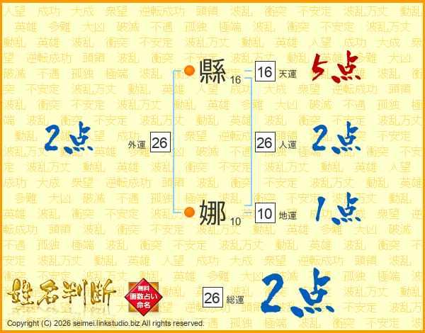 縣娜さんの総運は26画の2点!