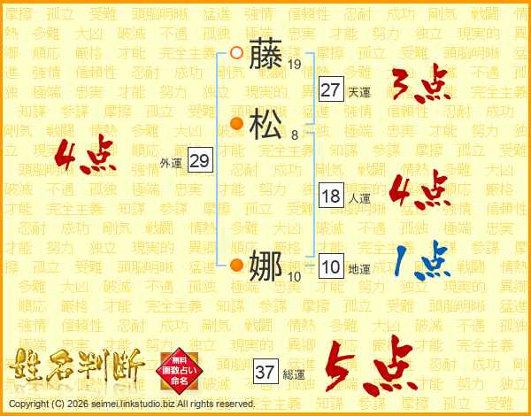 藤松娜さんの総運は37画の5点!