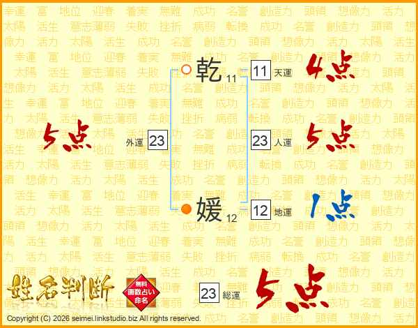 乾媛さんの総運は23画の5点!