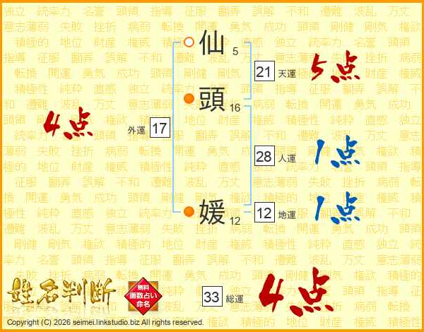 仙(5画)頭(16画) 媛(12画)