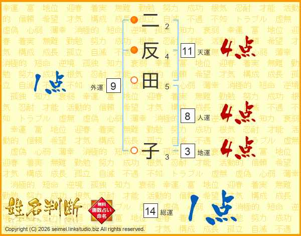 二反田子さんの天運は11画の4点!