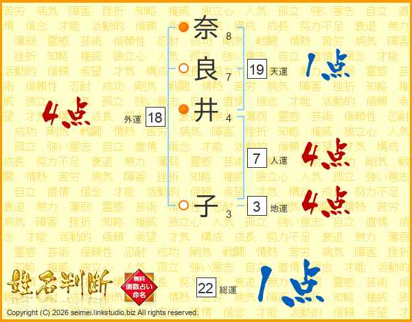 奈良井子さんの外運は18画の4点!