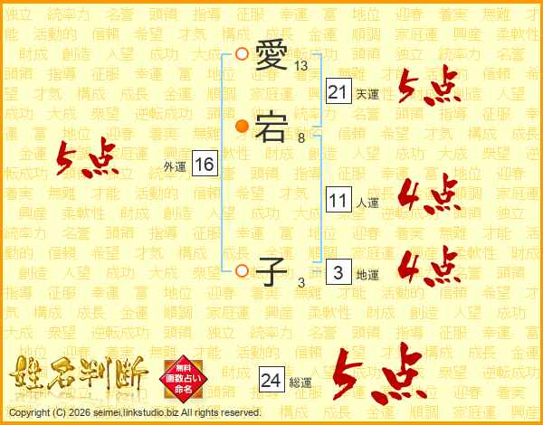 愛宕子さんの天運は21画の5点!