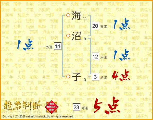 海沼子さんの総運は23画の5点!