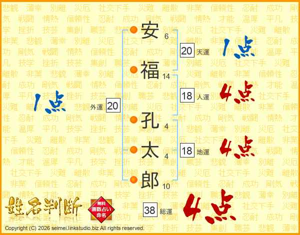 安福孔太郎さんの総運は38画の4点!