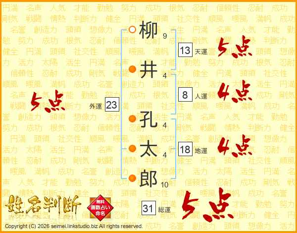 柳井孔太郎さんの総運は31画の5点!