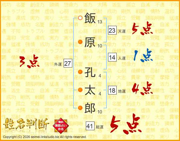 飯原孔太郎さんの総運は41画の5点!