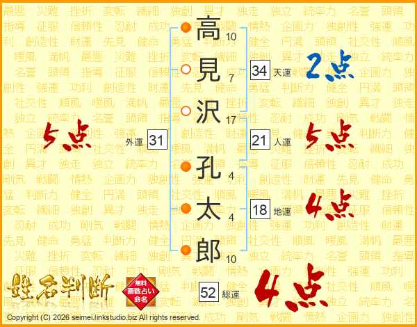 高(10画)見(7画)沢(17画) 孔(4画)太(4画)郎(10画)