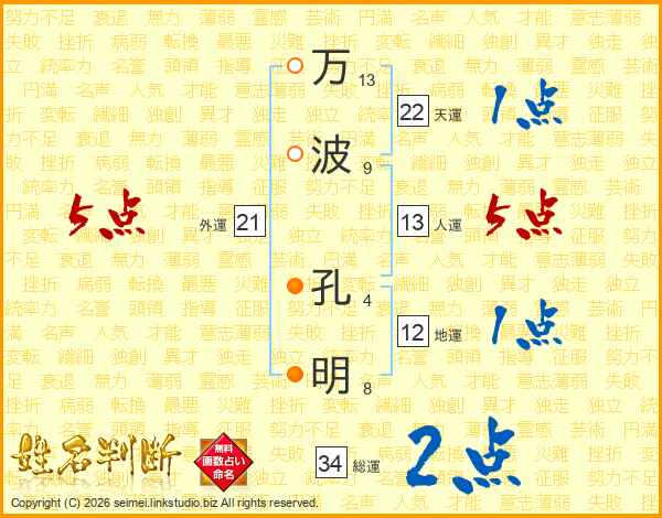 万波孔明さんの総運は34画の2点!