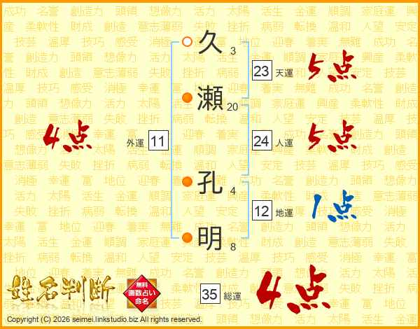 久瀬孔明さんの総運は35画の4点!
