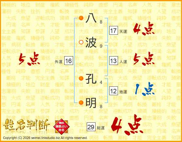 八波孔明さんの総運は29画の4点!
