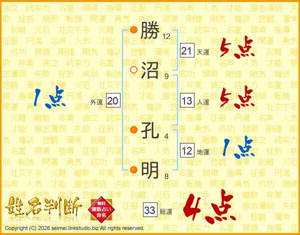 勝沼孔明さんの総運は33画の4点!
