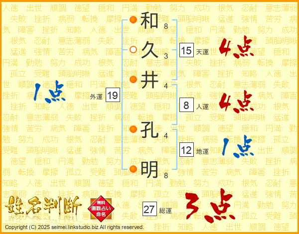 和(8画)久(3画)井(4画) 孔(4画)明(8画)