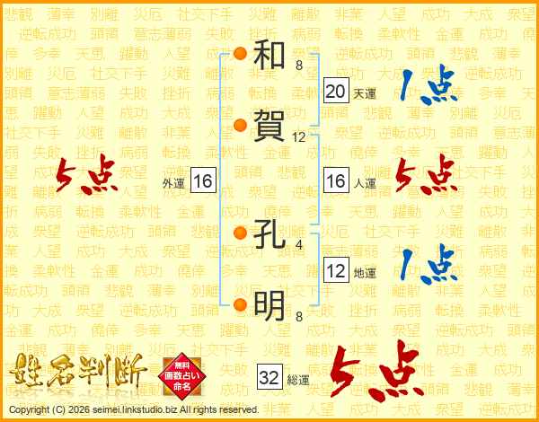 和賀孔明さんの総運は32画の5点!