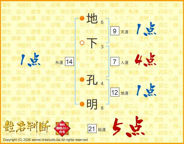 地下孔明さんの総運は21画の5点!