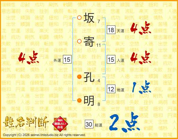 坂寄孔明さんの総運は30画の2点!