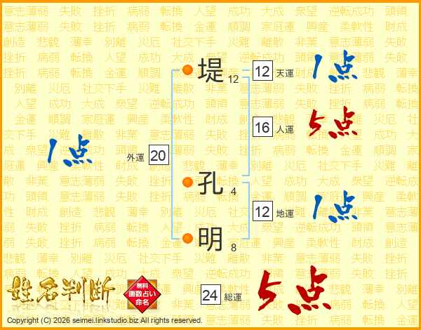 堤孔明さんの総運は24画の5点!