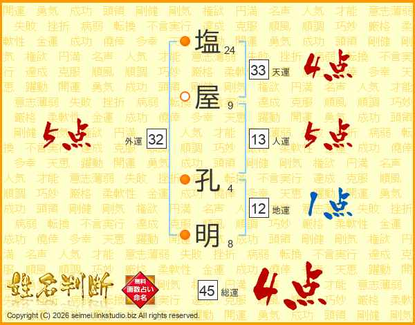 塩屋孔明さんの総運は45画の4点!