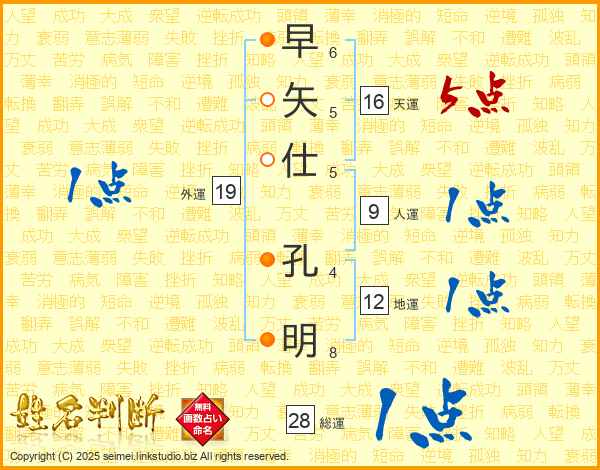 早矢仕孔明さんの総運は28画の1点!
