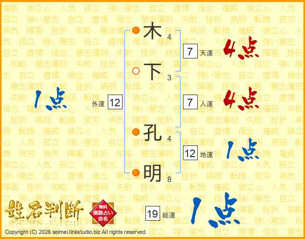 あなたの人生を表す1番重要な運勢です。生涯を通じて影響する総合運となり、主に50歳以降の晩年期に影響を及ぼします。苗字と名前の合計画数。