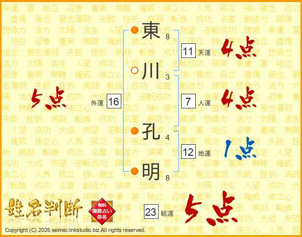 東川孔明さんの総運は23画の5点!