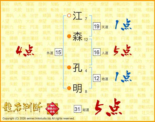 江森孔明さんの総運は31画の5点!