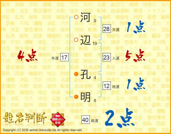河辺孔明さんの総運は40画の2点!