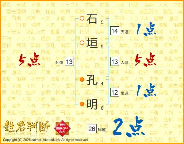 石垣孔明さんの総運は26画の2点!