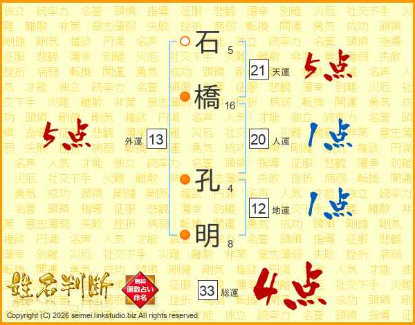 石橋孔明さんの総運は33画の4点!