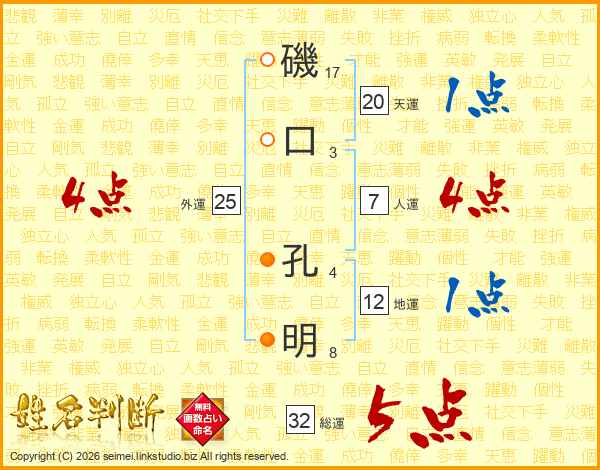 磯口孔明さんの総運は32画の5点!