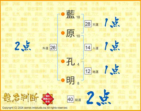 藍原孔明さんの総運は40画の2点!